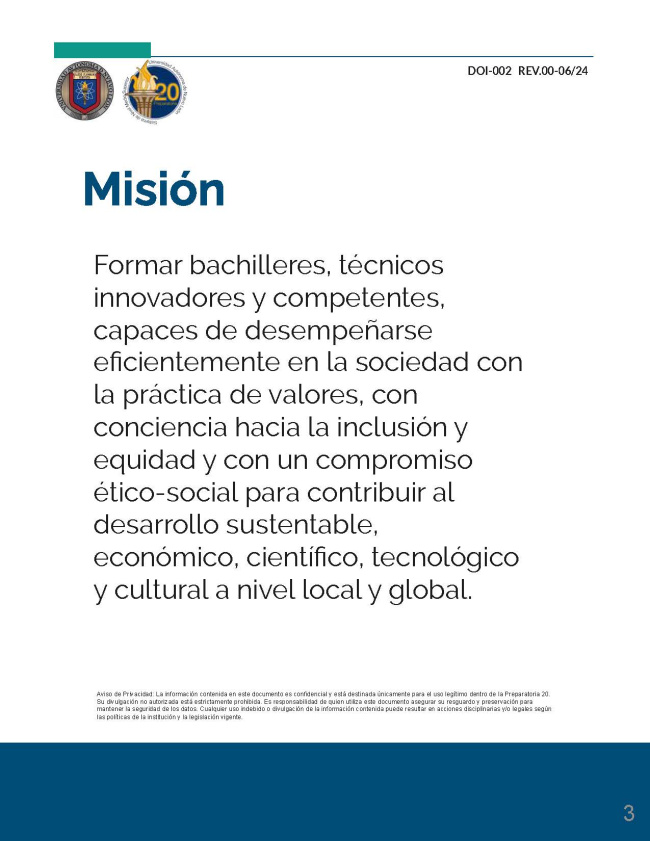 Misión de la Escuela Preparatoria 20 de la UANL (DOI-002)